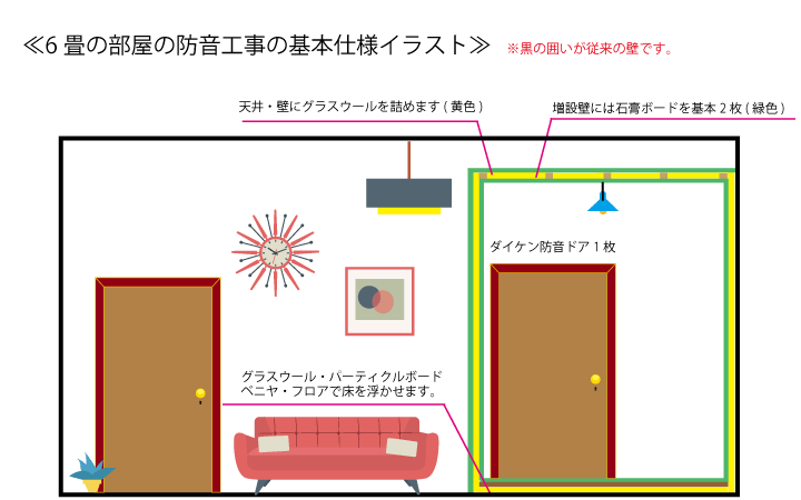 しかし、そこまでにこだわらずに、最低限の事(吸音・遮音)やルームチューニングを行うだけでは 高額になる事はありません。